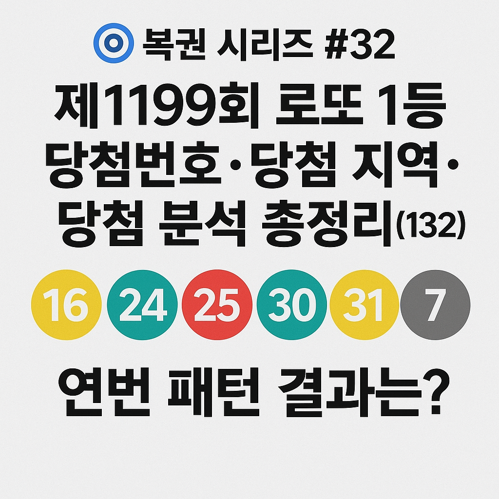 | 복권 시리즈 [31편] 1198회 로또 1등 당첨번호·당첨지역·명당·분석 총정리 — 자동 7명·수동 3명 (0) | 2025.11.16 |