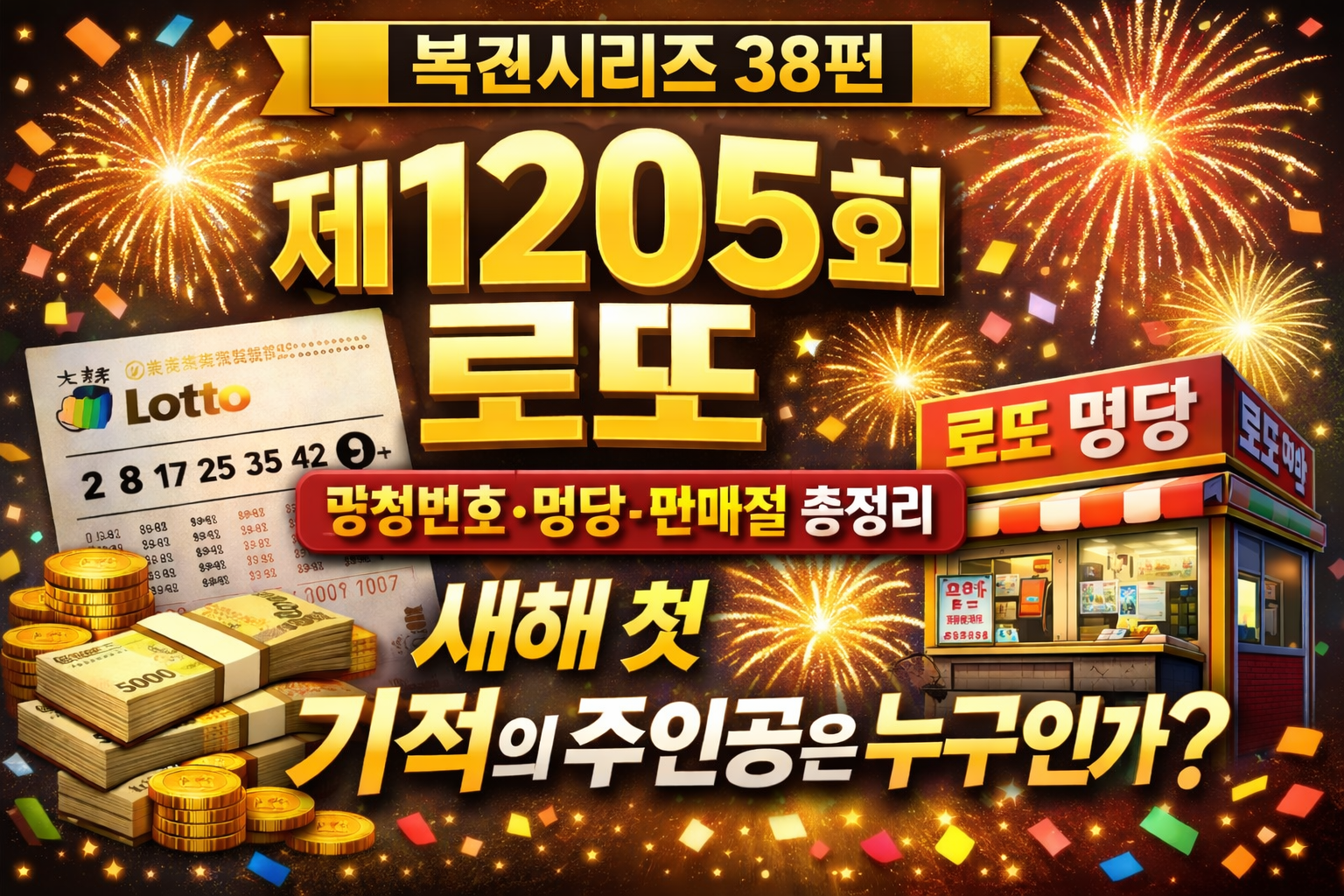 | [복권 시리즈 39편] 로또 1206회 당첨번호 및 1등 명당 15곳 총정리 (예상 당첨금 약 18억) (1) | 2026.01.10 |