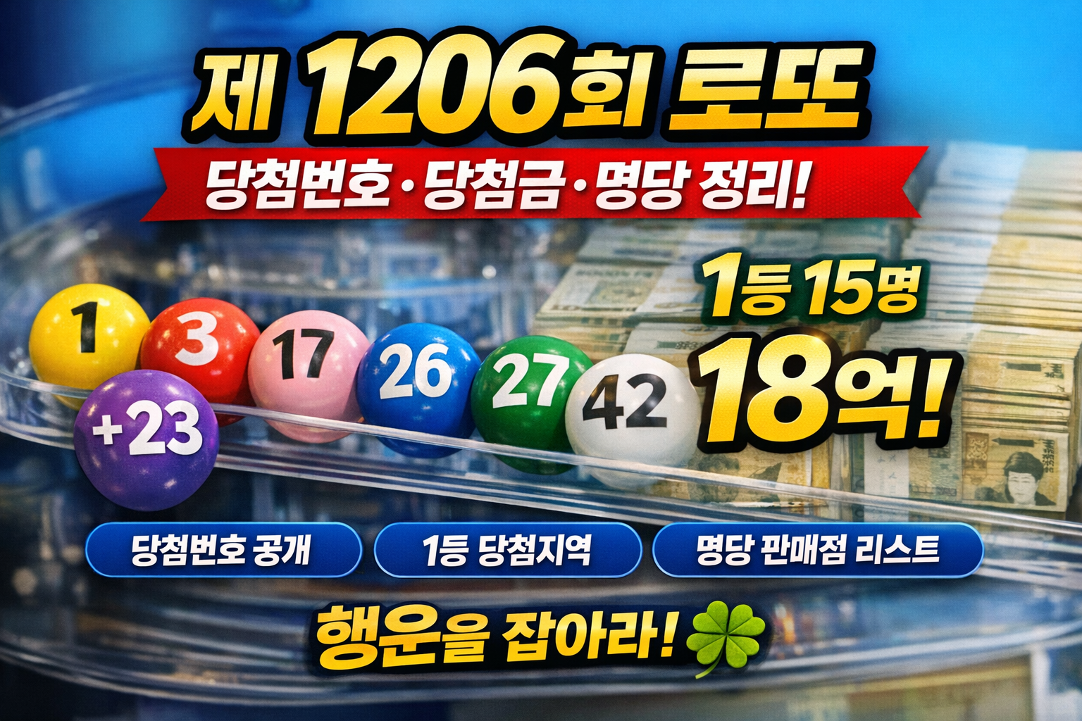 | [복권시리즈 제41편] 제1210회 로또 당첨번호 및 당첨지역·판매점 총정리– 1등 24명, 전국 분산 당첨 (0) | 2026.02.07 |