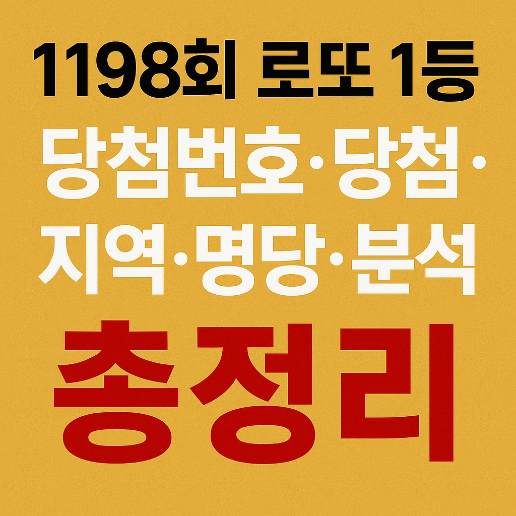 복권 시리즈[31편] 1198회 로또 1등 당첨번호·당첨지역·명당·분석 총정리 — 자동 7명·수동 3명