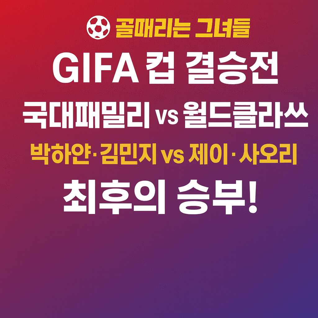 | [골때리는 그녀들] GIPA컵 결승전 리뷰FC 국대패밀리 3 : 0 FC 월드클라쓰 — 완벽한 우승 드라마 (0) | 2025.11.20 |